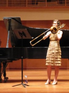 Congratulations to Iowa graduate student Jessica DuCharme, student of Dr. David Gier and teaching assistant to the trombone studio, for winning the Grand Prize at the recent Southeastern Trombone Symposium! Her prize was a brand new Shires trombone. Jessica performed the Tomasi Concerto in the final round. Jessica holds the Bachelor of Music degree from the Columbus State University and will complete the Masters Degree in Music from the University of Iowa in the spring of 2011.