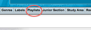 1. Access NML as usual (in your desktop internet browser) and click on the Playlists tab at the top of the page: