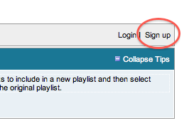 2. Click Sign Up on the right, Sign up for Student Playlists and click the link in the account activation email you receive.