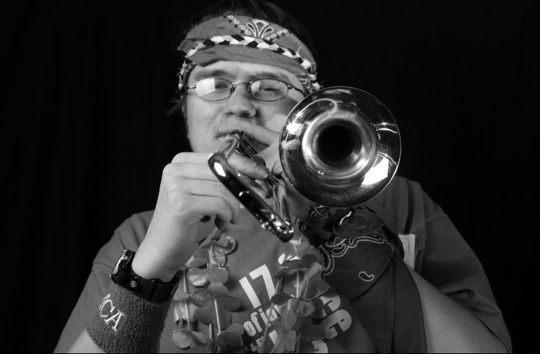 Trombonist Eric Jesteadt has been involved with the Dance Marathon for several years, often assisting with the music. He is pictured below with his soprano (!) trombone.