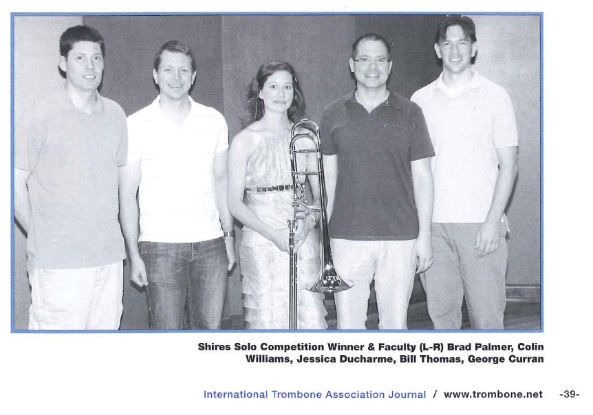 I posted months ago about one of our graduate students, Jessica Ducharme, winning the top prize at the Southeast Trombone Symposium. Yesterday I received the new ITA Journal and there is an article about the symposium and competition. Check pages 37-39.