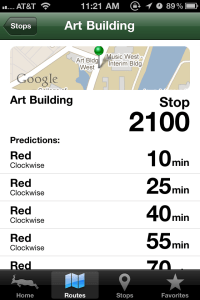 The University of Iowa ITS department has recently released two iOS apps that will bring great features to students, faculty, and employees of the university. The first of these is eBongo (iTunes link). This is a native application offering the same features as the mobile web version, but the app is faster, more responsive, and has more features. It is easier to find your stop or route and the user is able to save “Favorites” as most of us take the same buses each day. The feature that will be beneficial to most users is the estimated time of arrival for each bus. This is especially important on those extremely cold and windy winter days here in Iowa.