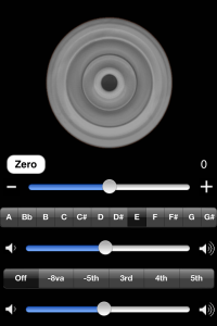 At the suggestion of one of my students, I downloaded Just Drones by Michael Eskin. The app is just what it sounds like – just drones. The are three sliders: pitch modulation, the volume of the primary drone, and the volume of the secondary drone. As one can see from the screen shot, one can easily choose the pitch of the drone as well as the interval of the secondary drone. The app reviews show that a majority of people gave this one star, but I have to disagree. I feel that it is very useful to have drones with you on the go, without taking us significant storage in your iTunes library for audio files. This also adds more control than a stand-alone audio file. The interface isn’t fancy, but the app is useful. I would easily give this four stars, five stars if the interface were slightly modified so that the pitch selection were easier. For those with large fingers, like myself, selecting the drone pitch can be difficult as the buttons are quite small.