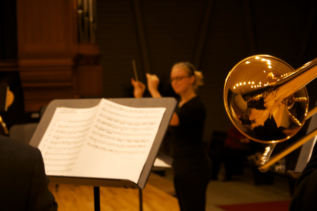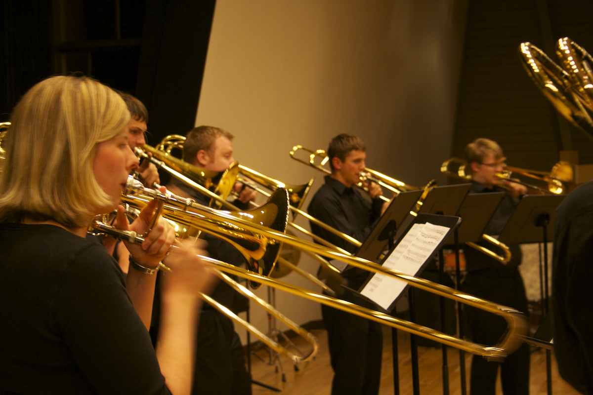 Last night, November 1, several brass chamber ensembles put on a recital. Organized by tuba DMA student Kate Wohlman, the recital had performances by the Iowa Trombone Choir, the Low Trio, The Old Gold Brass Quintet, Collegium Tubum, and the Eastern Iowa Brass Band; under the direction of Kate Wohlman. These are just a few of the many brass chamber ensembles at the University of Iowa. The recital was a great success – great turnout and fine performances by all of the ensembles.
