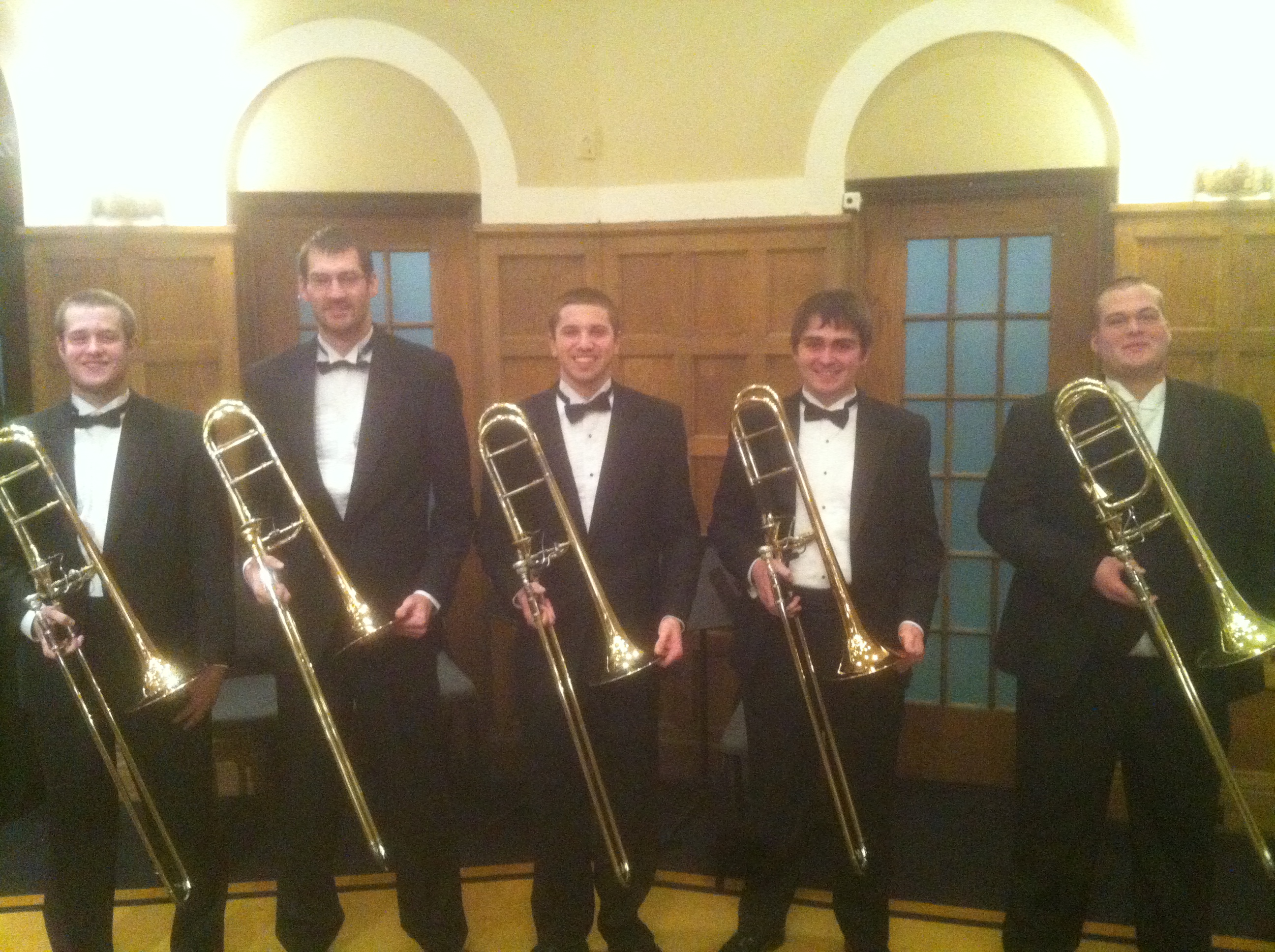 The University of Iowa Symphony Band performed a concert as part of the Iowa Honor Band on February 16, 2013. Pictured, from left to right, are Andrew Birschbach, Kyle Pape, Steven Boswell, Justin Gingerich, and Paul Upmeyer.